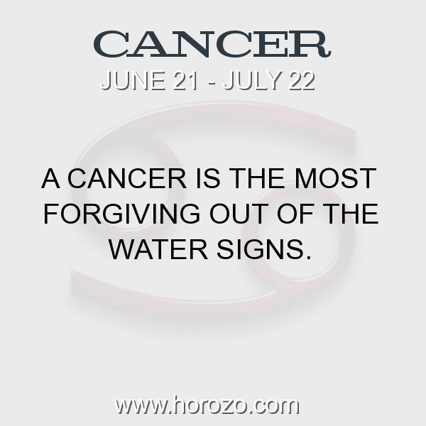 Those born under cancer will exhibit personality traits ranging from sweetness and loyalty to petulance and resentment. Cancer is the fourth sign in the zodiac. What does the cancer sign symbolize? We're talking about the fourth zodiac sign, cancer. If you were born between june 21 and july 22 (like me!), then your zodiac sign is cancer, which is represented by the crab and associated with things like the moon, water, and emotions. Read on to learn all about the cancer sign, including key cancer traits, how crabs behave in different kinds. It's hard for you to forget someone. People born between june 21 and july 22 have the cancer zodiac sign. Cancers are overly sensitive and cannot fight their own battles. The cancer is ruled by the moon and their moods wax and wane like the lunar cycle. Cancer is the fourth sign of the zodiac. In astrology, cancer is the fourth sign of the 12 signs of the zodiac, which begins its cycle at the start of summer during cancer season. Ruled by the moon and characterized by the crab, cancer has so much going on in its watery depths.